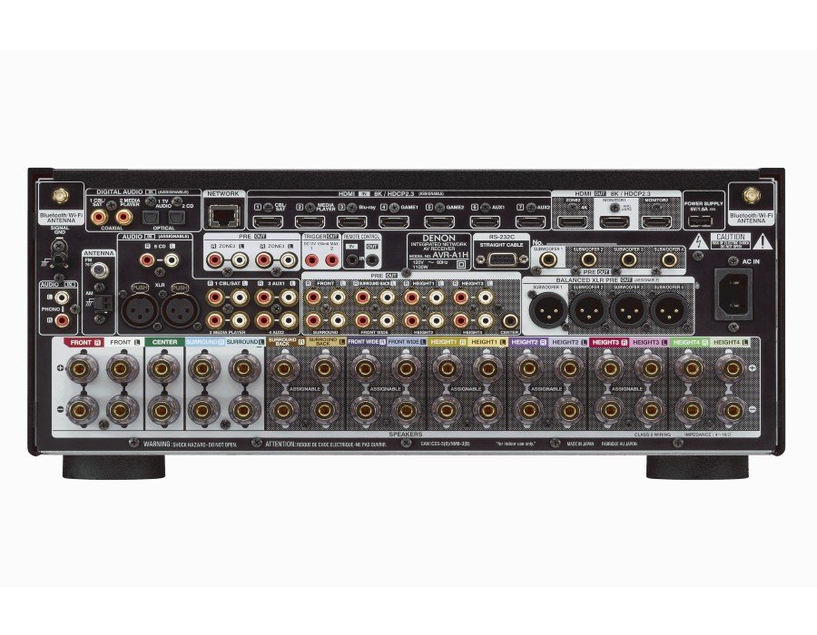 With 15 channels of amplification, our most powerful transformer, carefully selected parts, and hefty, high-rigidity construction, the AVR-A1H supports up to 9.4.6 configuration and delivers a professional theater experience in your home cinema. Designed and manufactured at Denon facilities in Japan.