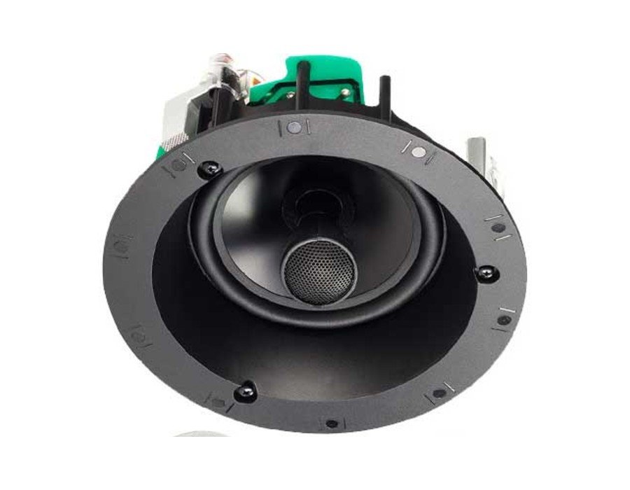 Helos 12 features a high-resolution neodymium tweeter mounted on a pivoting tweeter stem that easily aims at the primary listening location. This design allows the audience to enjoy the highest levels of in-ceiling audio performance, while still providing rich, detailed sound throughout the entire room.