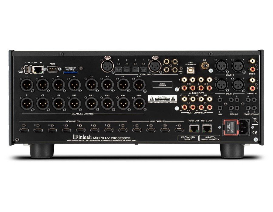 The MX170 takes advantage of the latest advancements in processing power to run cooler while performing better than any previous McIntosh home theater processor. Its easy to use and robust setup program allows for great customization and optimization based on your needs. It has the timeless and sought-after McIntosh look of a black glass front panel, control knobs, illuminated logo and custom aluminum end caps. It can be paired with a variety of amplifiers and speakers to make a complete home theater system.