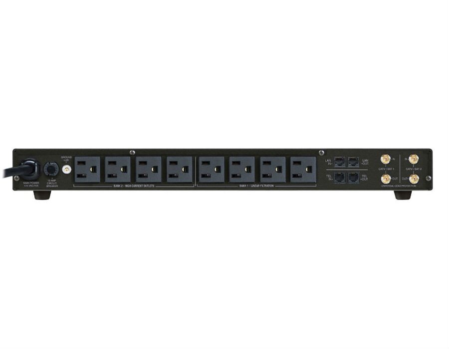 9 Outlet Power Management, specifically designed and engineered to provide protection, filtration and power monitoring for your home theater system. Media lights illuminate equipment.